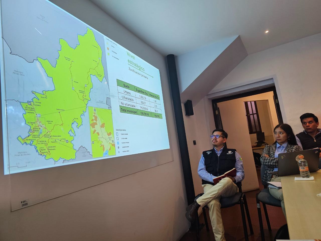 Durante la reunión, se abordaron temas clave, como el estatus actual del programa, se revisaron aspectos relacionados con la zonificación propuesta dentro del documento, considerando la posibilidad de realizar ajustes o modificaciones que resulten necesarias para garantizar el desarrollo ordenado y sostenible del municipio.