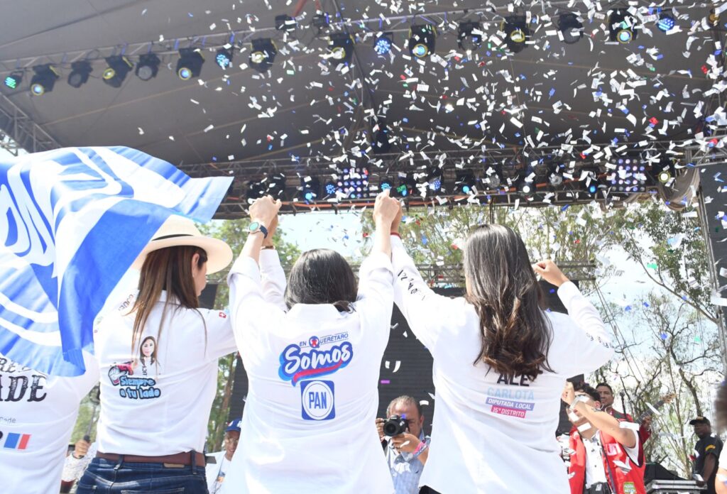 En evento celebrado en la Unidad Deportiva de Cadereyta de Montes, Ale Carlota, candidata a diputada local por el distrito XV, junto con el candidato a la presidencia municipal Miguel Martínez Peñaloza, cerraron su campaña en compañía de aproximadamente seis mil personas.