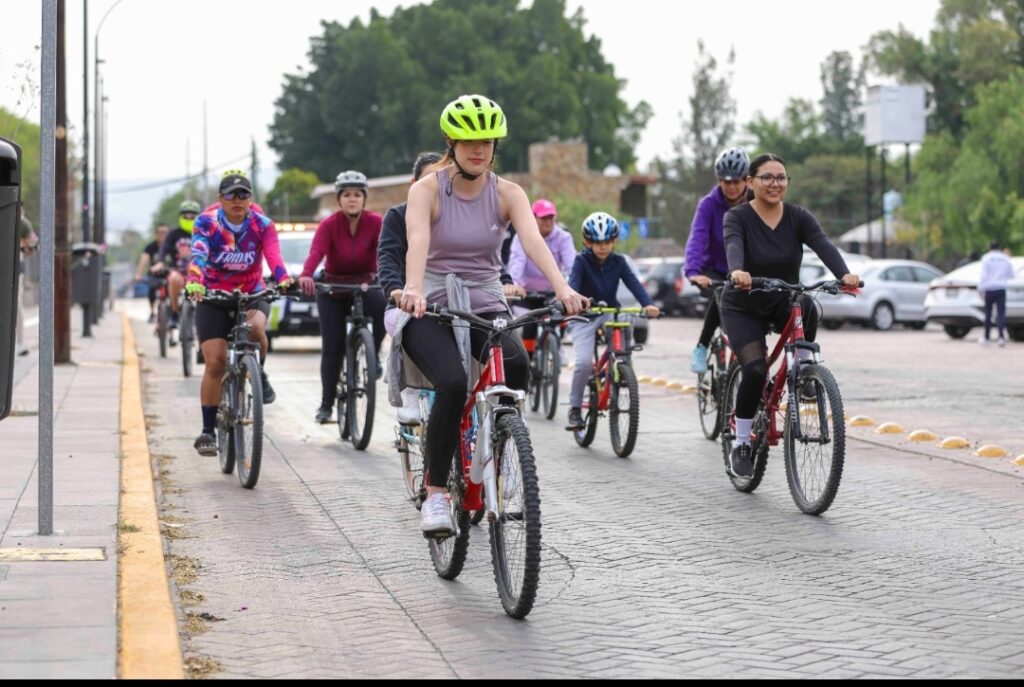 La Secretaría de Movilidad y la Secretaría de la Mujer de Corregidora llevaron a cabo la rodada “Rodamos Juntas, Llegamos Lejos”, en la que hombres y mujeres recorrieron en bicicleta diversas calles en la cabecera municipal.