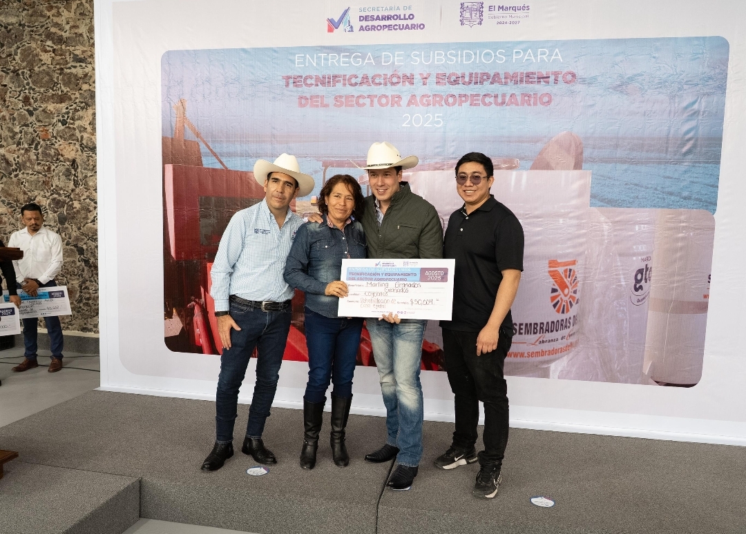 “Hoy damos un paso más para poderlos respaldar, con subsidios e insumos que les ayudan a seguir sembrando, cuidando su tierra y fortaleciendo cada uno de todos sus proyectos. También damos respuesta a 35 de sus solicitudes que integran a 233 beneficiarios, con una bolsa de más de tres millones de pesos entre inversión municipal y de los productores. Este es un gran esfuerzo que se hace en conjunto con ustedes, que nunca bajan los brazos, y de un gobierno que quiere verlos crecer, producir y, sobre todo, que salgan adelante. Gracias por todo lo que hacen por el municipio de El Marqués, gracias por creer en la tierra y gracias por enseñarnos que el campo también es el futuro, porque cuando el campo está bien, nuestra gente está mejor”, resaltó Monsalvo Castelán.