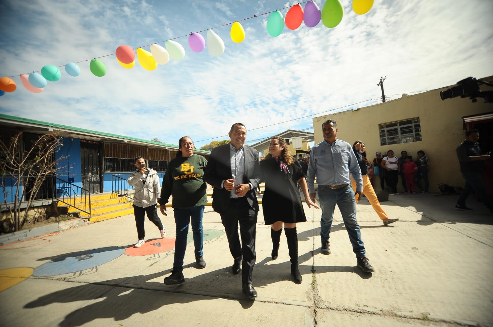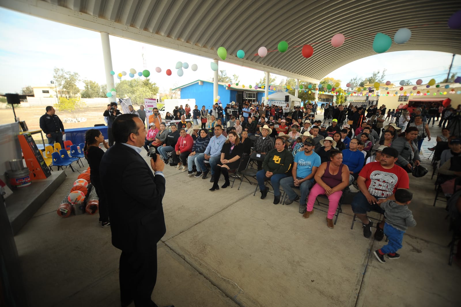 - Durante el evento se entregaron insumos como pintura, impermeabilizante, pizarrones, láminas, balones, redes, focos, mesas, sillas y reflectores a 5 delegaciones municipales y 4 escuelas.