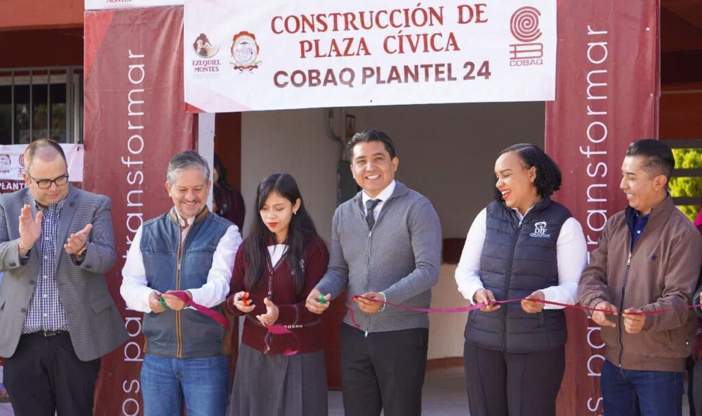 El Presidente del municipio de Ezequiel Montes Iván Resendiz llevó a cabo la entrega de la nueva Plaza Cívica en el COBAQ Plantel 24 de Villa Progreso.
