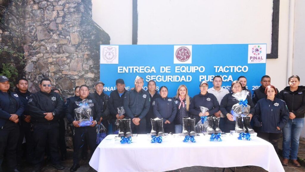 En esta ocasión, se entregaron 35 pares de botas tácticas, con una inversión superior a 35 mil pesos, equipo que contribuirá a brindar mayor seguridad y confianza a quienes diariamente velan por la tranquilidad de las familias pinalenses. En el evento se destacó que, aunque se trata de un equipamiento sencillo, representa protección y firmeza para los elementos de seguridad, al tiempo que se refrendó el compromiso de la administración de seguir fortaleciendo a la corporación.