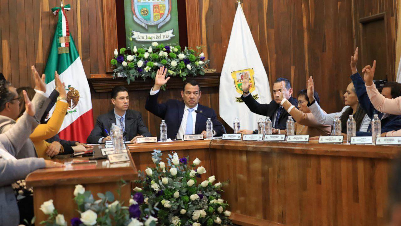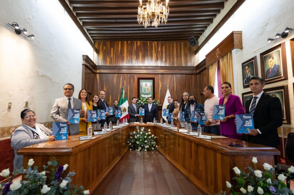 • El presidente municipal de San Juan del Río, Roberto Cabrera Valencia, en sesión solemne de Cabildo, entregó al Ayuntamiento Sanjuanense su Primer Informe de Gobierno del periodo 2024-2027.