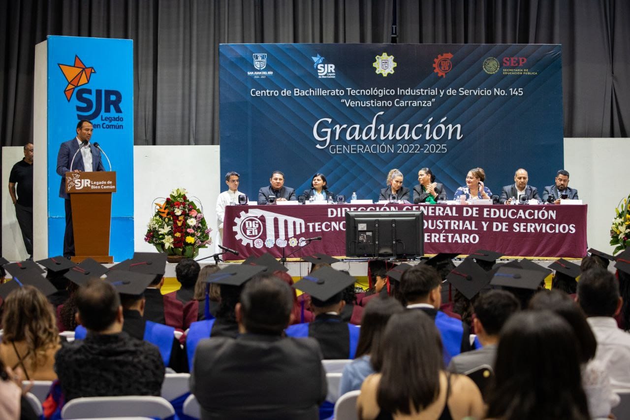 La educación es transmisora de valores, por ello, tiene un lugar primordial para el Gobierno Municipal de San Juan del Río, afirmó el alcalde sanjuanense, Roberto Cabrera Valencia, al encabezar la Ceremonia de Graduación de la Generación 2022-2025 del Centro de Bachillerato Tecnológico, Industrial y de Servicio (CBTIS) 145.