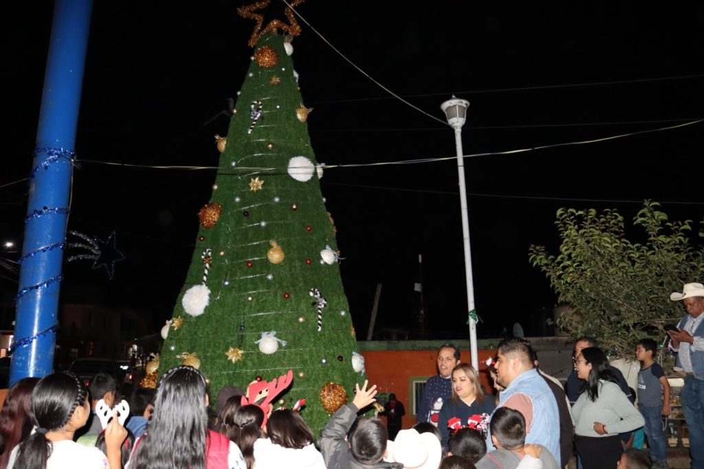 presidente del DIF Municipal, encendieron el Árbol de Navidad en la cancha de usos múltiples de la delegación de Santa Águeda, Pinal de Amoles. Este evento reunió a familias de Santa Águeda y localidades cercanas, marcando el inicio de la tan esperada temporada navideña. La presidenta municipal expresó su alegría al ver las sonrisas de los presentes y destacó que este acto refleja uno de los propósitos de su administración, que es el generar momentos de felicidad para la comunidad.