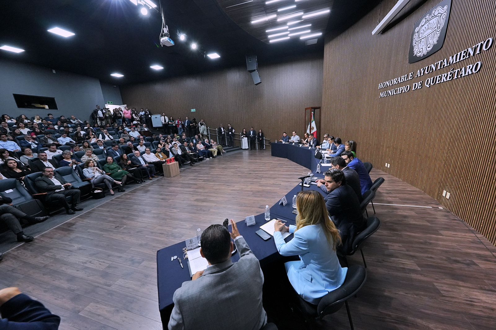 • El presidente municipal de Querétaro, Felifer Macías, encabezó el ejercicio de parlamento abierto para dialogar sobre la “Propuesta para Sancionar el Homicidio Vial”, en la que participaron presidentes de colegios de abogados, de asociaciones de cantinas, cámaras empresariales, representantes de la sociedad civil organizada, de la academia y de estudiantes universitarios.