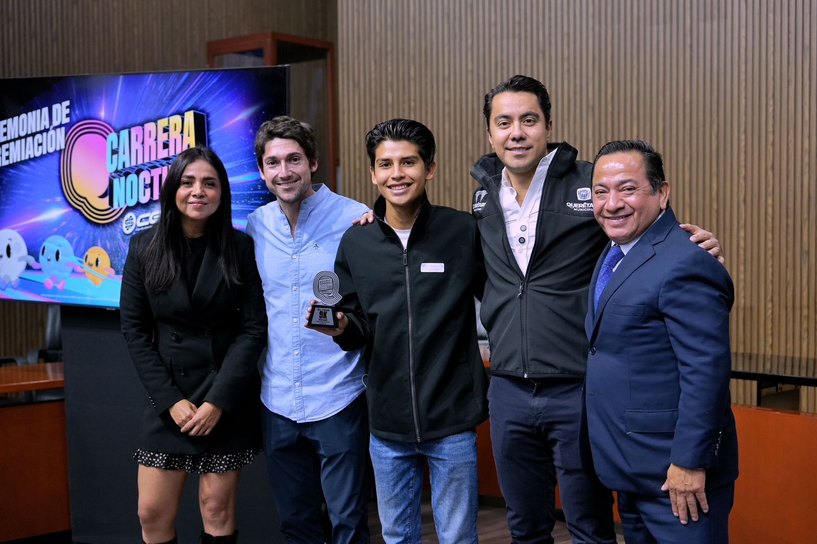 El presidente municipal de Querétaro, Felifer Macías, encabezó la ceremonia de premiación de la Carrera Nocturna CGV 2025, donde reconoció a las y los ganadores de las distintas categorías como ejemplo de compromiso y perseverancia, valores que fortalecen el rumbo de Querétaro y su futuro.