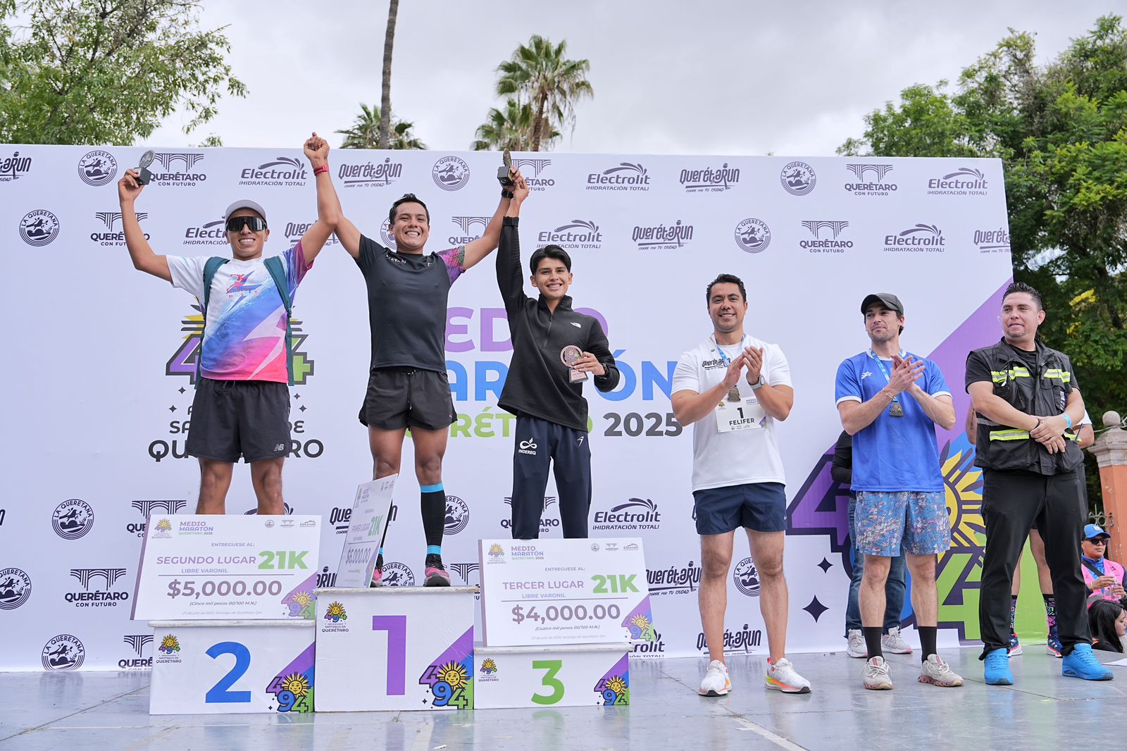 En el marco del 494 Aniversario de Santiago de Querétaro, el presidente Municipal de Querétaro, Felifer Macías, dió el disparo de inicio y participó en el Medio Maratón 2025 para las distancias de 21, 14 y 8 kilómetros, que reunió a más 4 mil 100 corredores locales, nacionales y de nivel internacional.