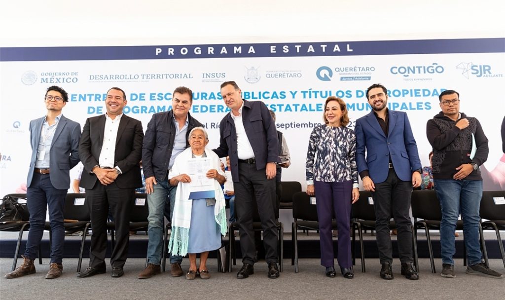 En Querétaro seguiremos trabajando juntos para asegurar un estado con hogares estables y comunidades más sólidas, afirmó el gobernador, Mauricio Kuri González, al encabezar la entrega de 109 escrituras públicas y 10 títulos de propiedad a familias de San Juan del Río y Tequisquiapan, un esfuerzo conjunto entre las administraciones estatal y municipales, y el Instituto Nacional del Suelo Sustentable (INSUS).