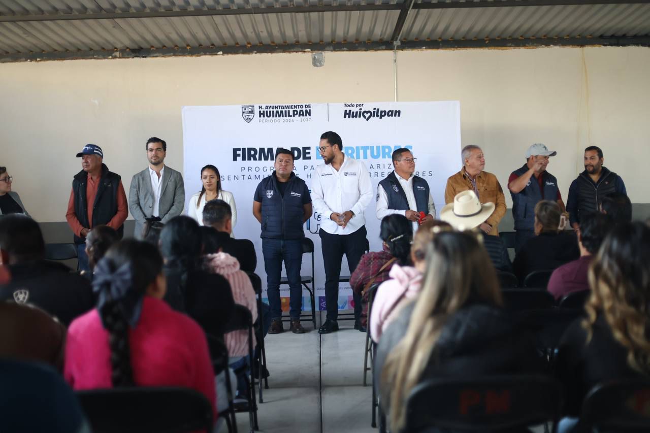 El presidente municipal de Huimilpan, Jairo Morales Martínez, encabezó la entrega y firma de escrituras para la regularización del asentamiento El Milagro, marcando el inicio de la última etapa del proceso que permitirá a más de un centenar de familias obtener certeza jurídica sobre su patrimonio.