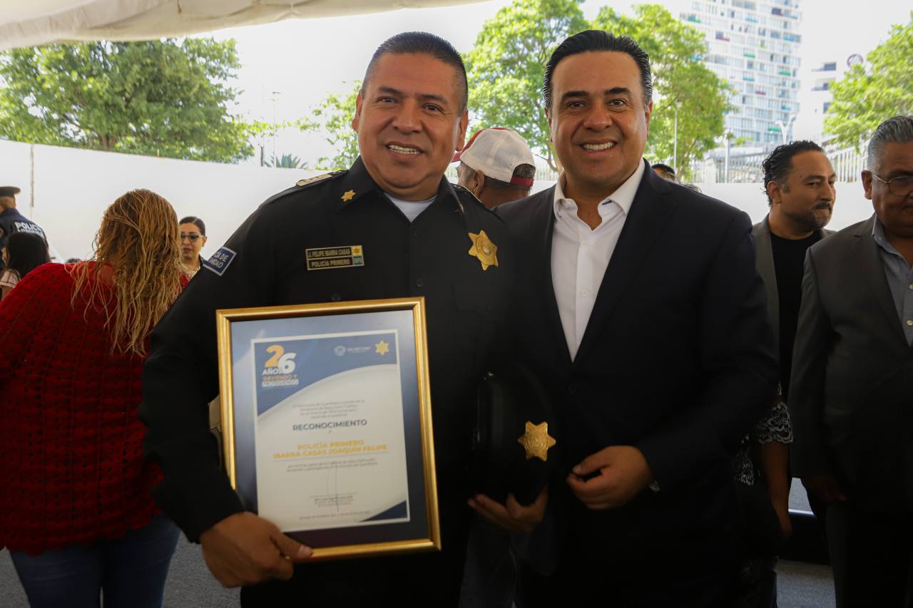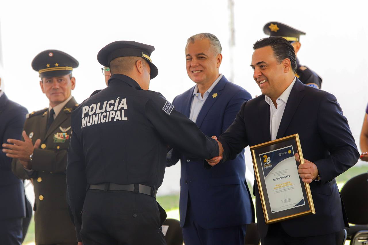 El Presidente Municipal de Querétaro, Luis Nava, encabezó la celebración del XXVI Aniversario de la Secretaría de Seguridad Pública Municipal, donde reconoció el trabajo de todas y todos los elementos que han integrado las filas de una policía confiable y bien preparada, y que a diario trabajan por la seguridad y tranquilidad de las familias queretanas.