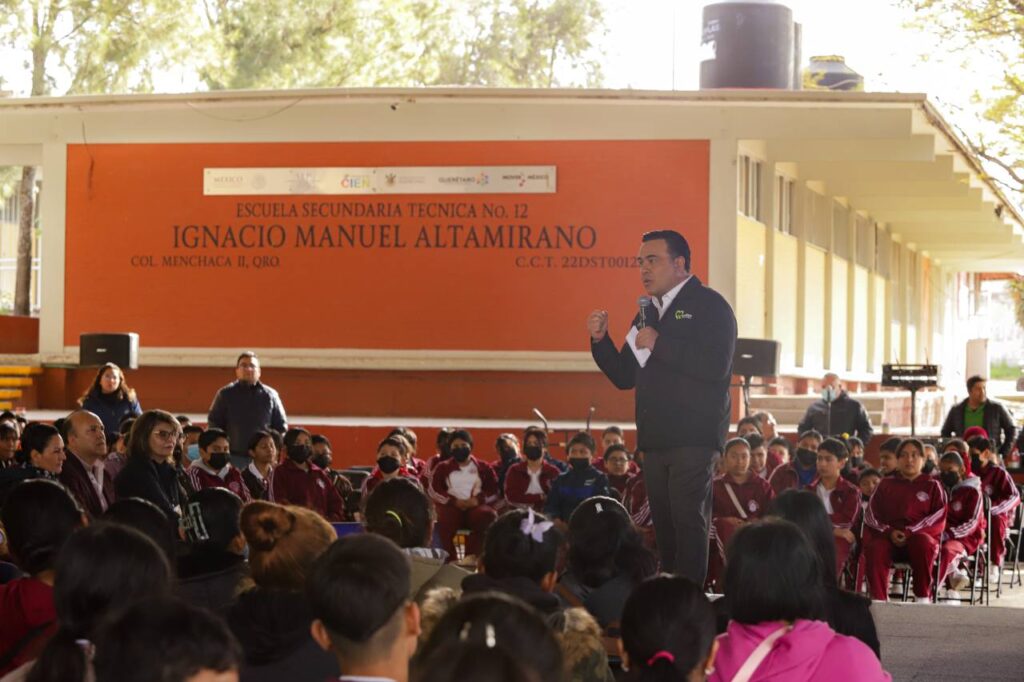 Como respuesta a la solicitud de las y los estudiantes y personal docente de la Secundaria Técnica no. 12 «Ignacio Manuel Altamirano», el Presidente Municipal de Querétaro, Luis Nava, acudió a sus instalaciones para la entrega de dos nuevas aulas, y en el marco de una gran convivencia anunciarles también la próxima rehabilitación de la cancha de fútbol 7.