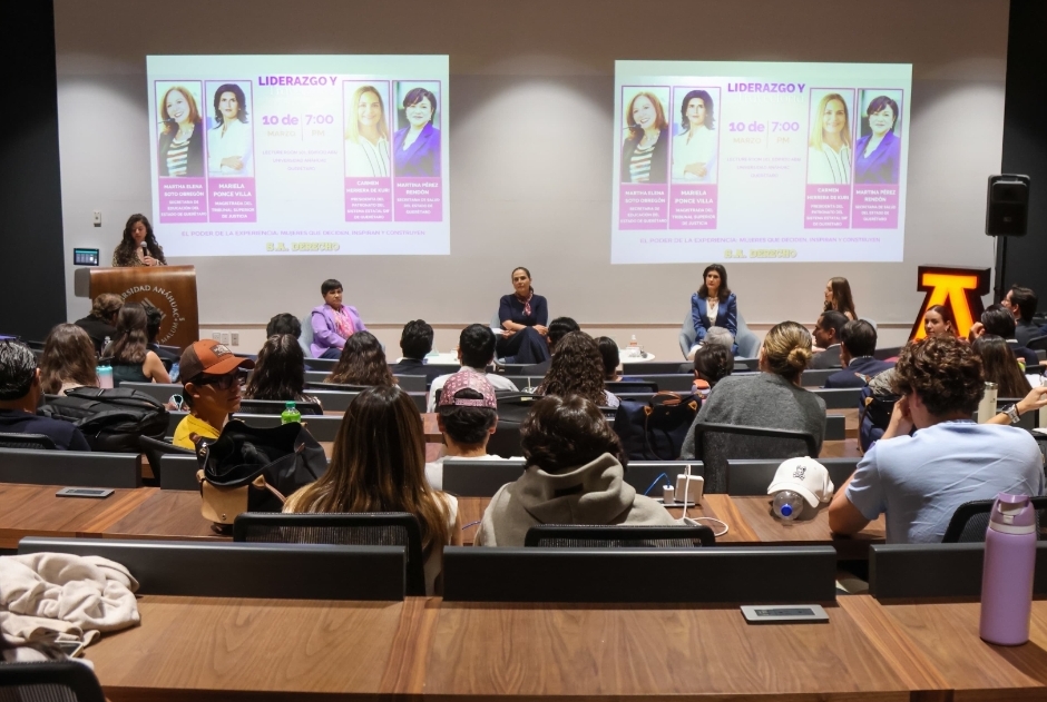 La titular de la Secretaría de Educación del Estado de Querétaro (SEDEQ), Martha Soto, encabezó el foro “Liderazgo y Trayectoria”, organizado en coordinación con la Sociedad de Alumnos de Derecho, de la Universidad Anáhuac Querétaro, con la finalidad de destacar la trayectoria de mujeres que han sido protagonistas en el desarrollo político de la entidad así como fortalecer la formación de jóvenes líderes.