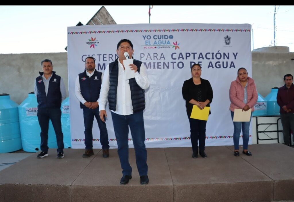 Ante más de mil personas, esta mañana el Presidente Municipal, Miguel Martínez Peñaloza destacó la importancia del programa Yo Cuido el Agua que tiene como propósito repartir 22 mil cisternas a igual número de domicilios con la intención subrayó, que las familias puedan enfrentar de mejor manera la sequía severa que tanto en Cadereyta como en Querétaro, México y el mundo se está padeciendo y que está causando graves estragos.