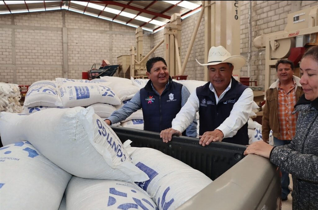 Teniendo como sede la bodega PROCOSEC, el alcalde destacó que gracias al apoyo del Gobernador del Estado Mauricio Kuri González es que se puede ampliar la cobertura de productores beneficiados con la entrega de maíz para consumo humano y pastura para ganado. Además dijo, la SEDEA apoyará a los productores pecuarios con el reparto de agua en pipas, esfuerzo al que se sumará la administración municipal, “El municipio va a adquirir tres pipas nos vamos a preparar con cisternas de 10 mil litros, con pipas de gobierno ellos haciendo su parte y nosotros la nuestra para mitigar este problema de sequía”.