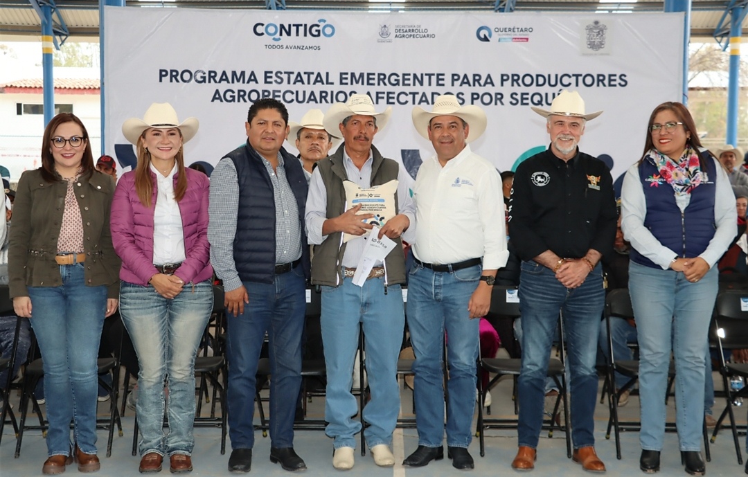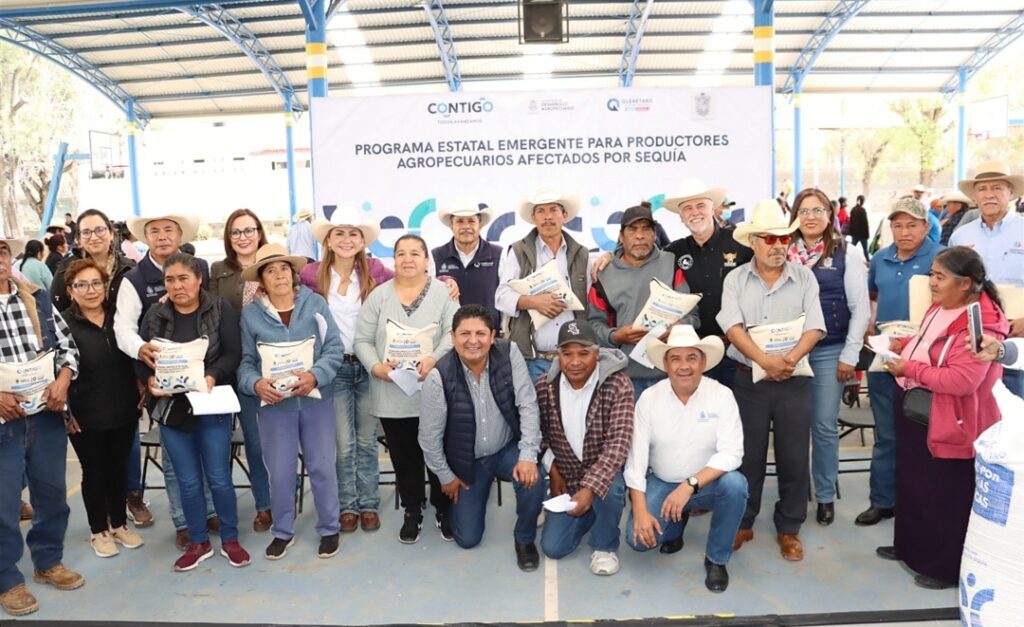 Asimismo José Antonio Martínez, a nombre de las y los productores beneficiados, compartió su experiencia como productor de temporal en esta zona del semidesierto queretano, y agradeció al gobernador Mauricio Kuri que tuvo a bien presupuestar recursos para este programa emergente, así también agradeció la buena voluntad del Presidente Municipal, Miguel Martínez Peñaloza, por respaldar estas acciones y programas del gobierno estatal en beneficio de los campesinos cadereytenses, “Nosotros vamos hacer lo que corresponde, cultivar nuestra tierra y aportar nuestro granito de arena, para seguir poniendo en alto el nombre de Cadereyta”.