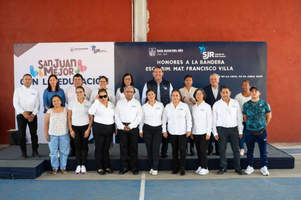 El presidente municipal de San Juan del Río, Roberto Cabrera Valencia, encabezó la ceremonia de honores a la Bandera en la escuela primaria matutina Francisco Villa, ubicada en el Barrio de La Cruz, donde destacó que, por medio de la escuela, se fortalece la calidad de vida de las familias de la demarcación, donde, con la Administración Municipal 2024-2027, se construye un Legado de Bien Común