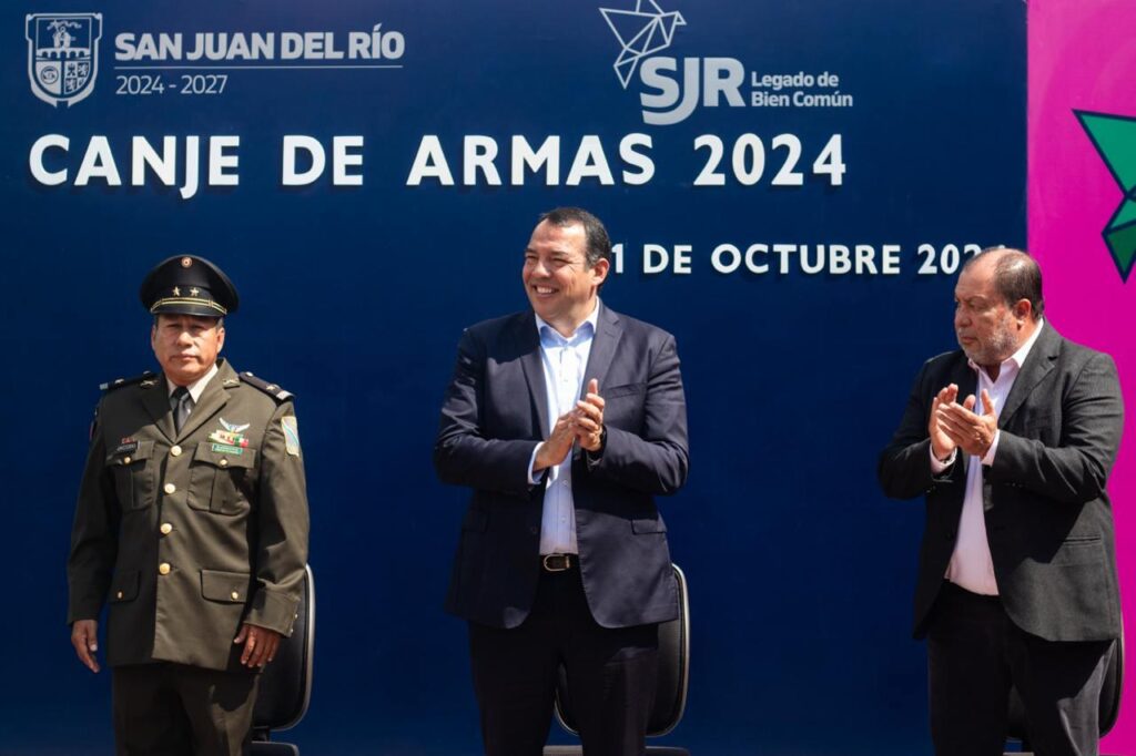 En un esfuerzo coordinado entre la Secretaría de la Defensa Nacional (SEDENA) y el Gobierno Municipal de San Juan del Río para promover e impulsar la cultura de la paz en la ciudadanía, el presidente municipal sanjuanense, Roberto Cabrera Valencia, y el Teniente Coronel del Arma Blindada, Jorge Martínez Jacobo, Segundo Comandante del Séptimo Regimiento Mecanizado La Llave, encabezaron el inicio de la campaña “Canje de Armas 2024”.