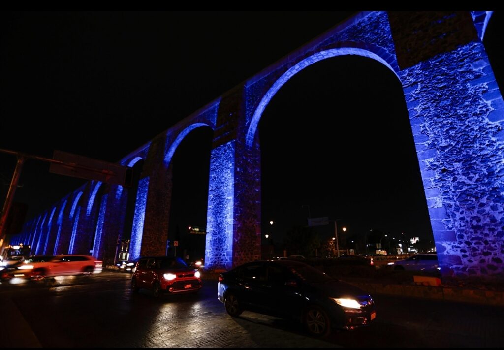 • Para conmemorar el Día Mundial del Síndrome de Down, Municipio de Querétaro realizó el encendido de Los Arcos en color amarillo y azul, para reconocer y visibilizar la inclusión, derechos y potencial que tienen las personas que viven con esta discapacidad.