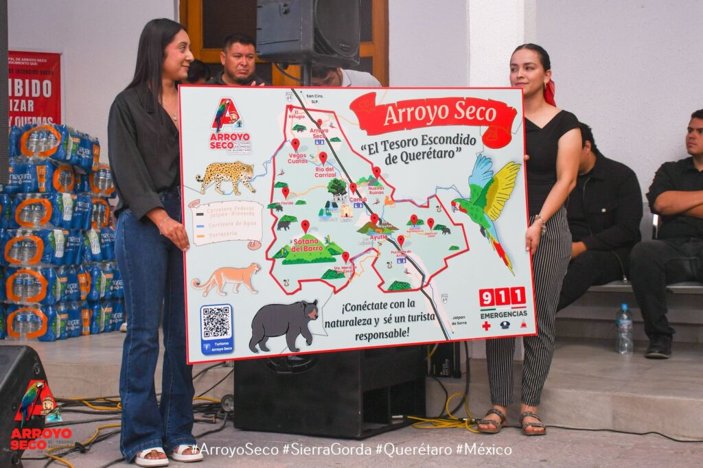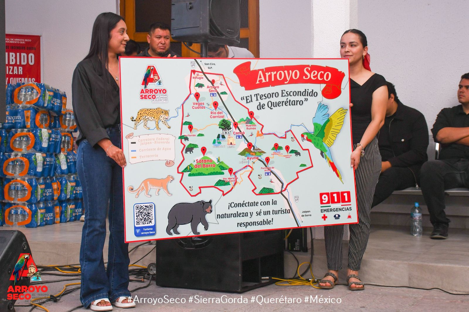 Además, se presentó un mapa turístico de Arroyo Seco, diseñado para facilitar la orientación de los turistas y promover los principales atractivos del municipio.