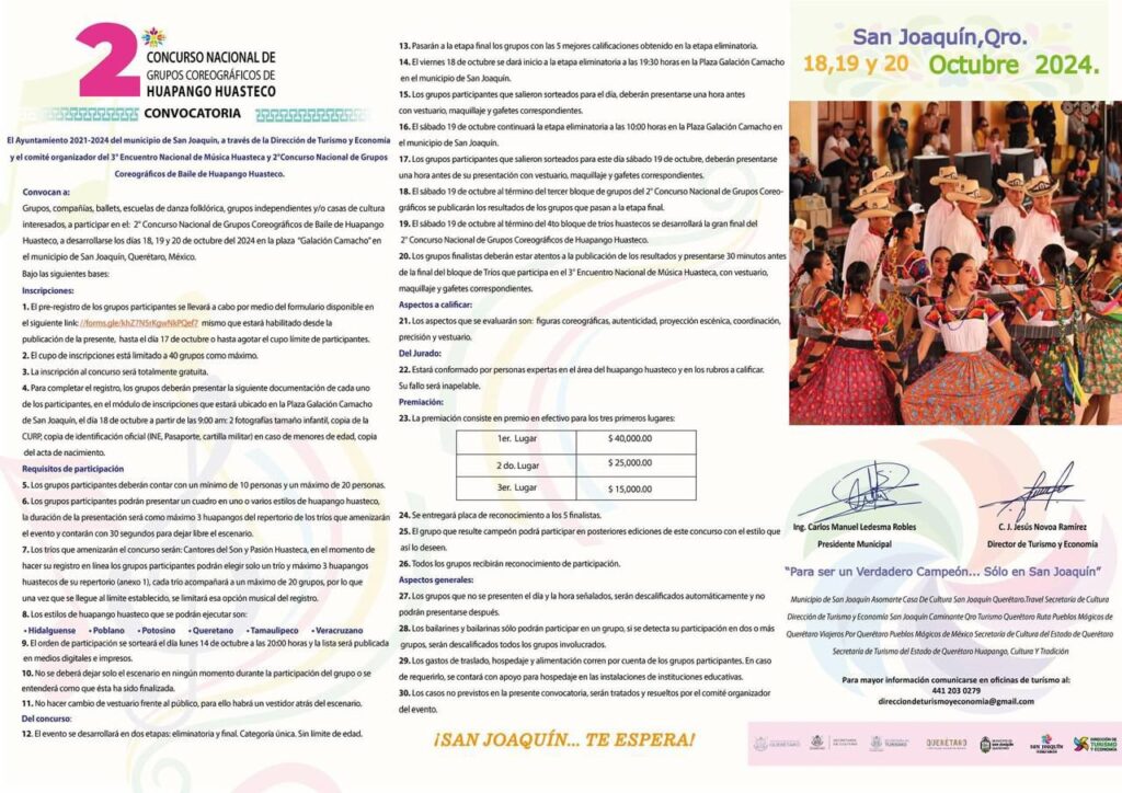 Mismo que tendrá lugar los días 18,19 y 20 de Octubre de 2024 en la Plaza Principal Galación Camacho en el municipio de San Joaquin, Qro., de acuerdo con las siguientes: