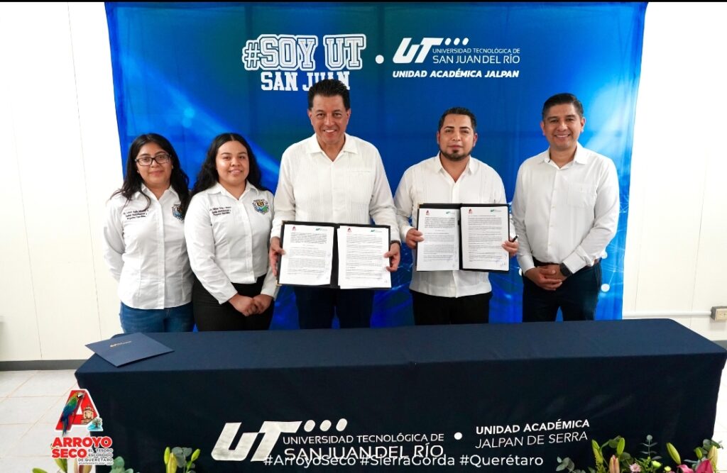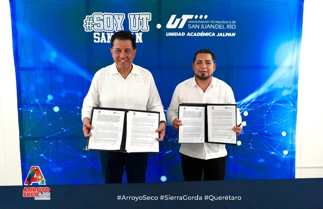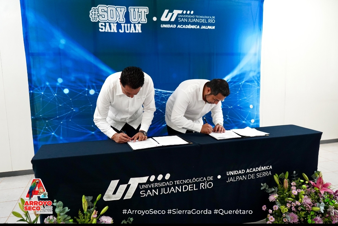 Siguiendo la línea de trabajo establecida desde el inicio de su administración para apoyar el desarrollo de la educación en Arroyo Seco, el presidente municipal, Fernando Sánchez Gil, celebró la firma de un convenio de colaboración con la Universidad Tecnológica de San Juan del Río.