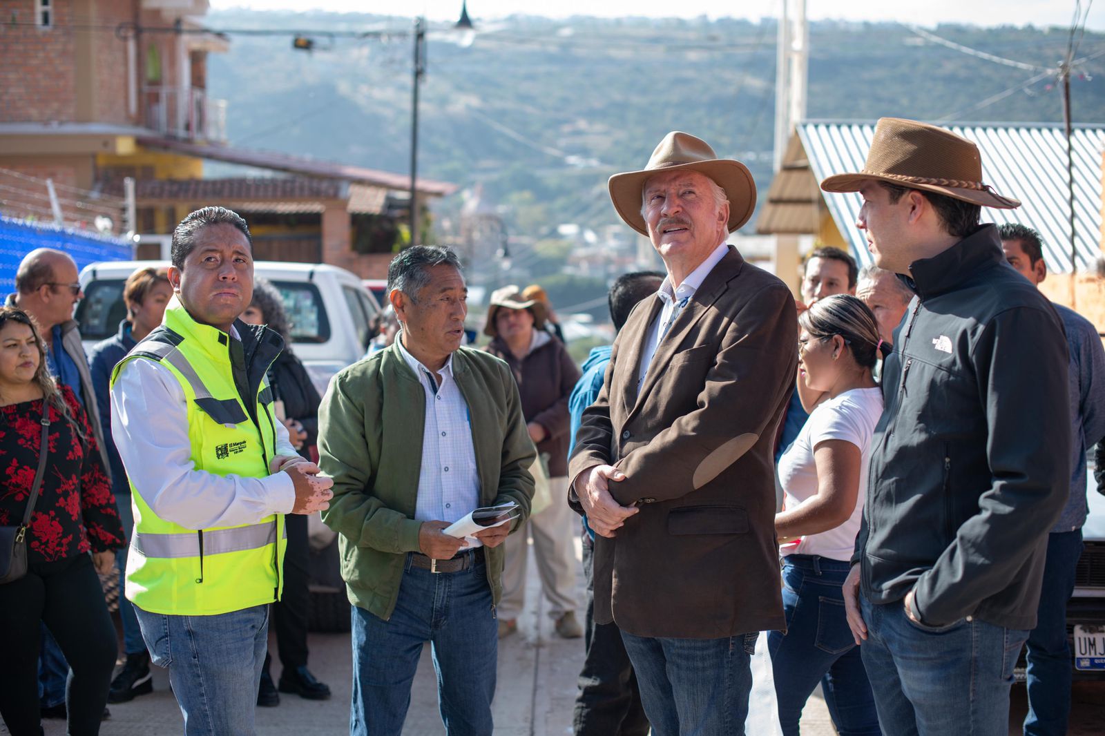 El presidente municipal de El Marqués, Enrique Vega Carriles, acompañado por el jefe de la Oficina de la Presidencia, Rodrigo Monsalvo Castelán y el secretario de Obras Públicas, Abraham Ibarra Villaseñor, asistieron al arranque de obras en La Cañada.
