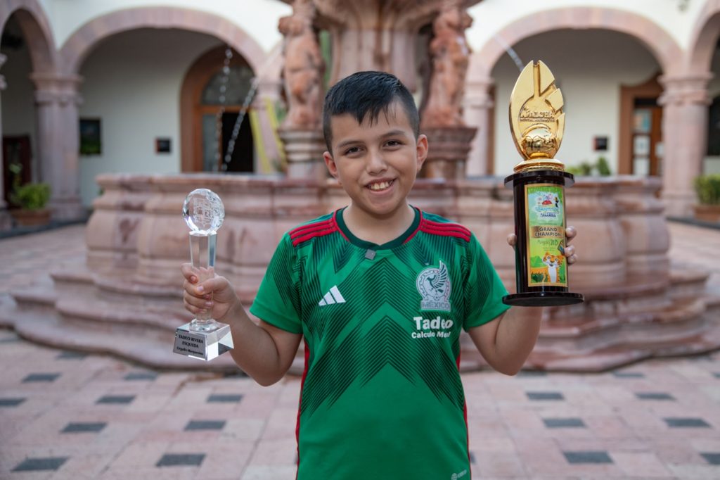 El presidente municipal de El Marqués, Enrique Vega Carriles, recibió en el Centro Municipal El Marqués, al niño Tadeo Rivera Esqueda, orgullo marquesino, perteneciente a la comunidad de San Vicente Ferrer, quien a sus 11 años se convirtió en el Grand Champion a nivel mundial, al contender con 40 países en la Competencia Internacional de Cálculo Mental del sistema ALOHA, realizado en Malasia.