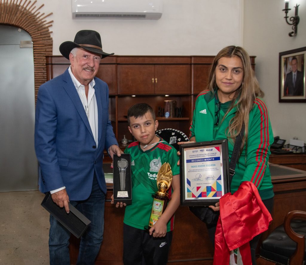 El alcalde felicitó a Tadeo por obtener este máximo galardón, al resolver 70 acertijos matemáticos en 3 minutos con 20 segundos, con cero errores, lo que lo ubica por arriba de todos los ganadores. Además, reconoció su esfuerzo y dedicación para desempeñar un gran papel en la competencia donde dejó el nombre del municipio en alto.