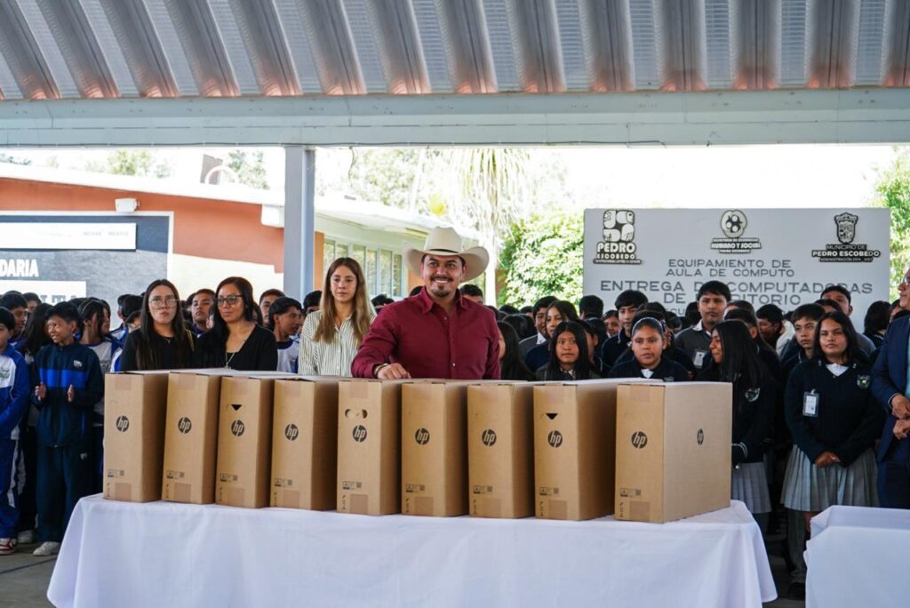 Con el objetivo de fortalecer las condiciones de aprendizaje y reducir la brecha digital en el municipio, el presidente municipal, Beto Nava, encabezó la entrega de equipos de cómputo en la telesecundaria “Ángela Peralta”, ubicada en la comunidad de Epigmenio González.