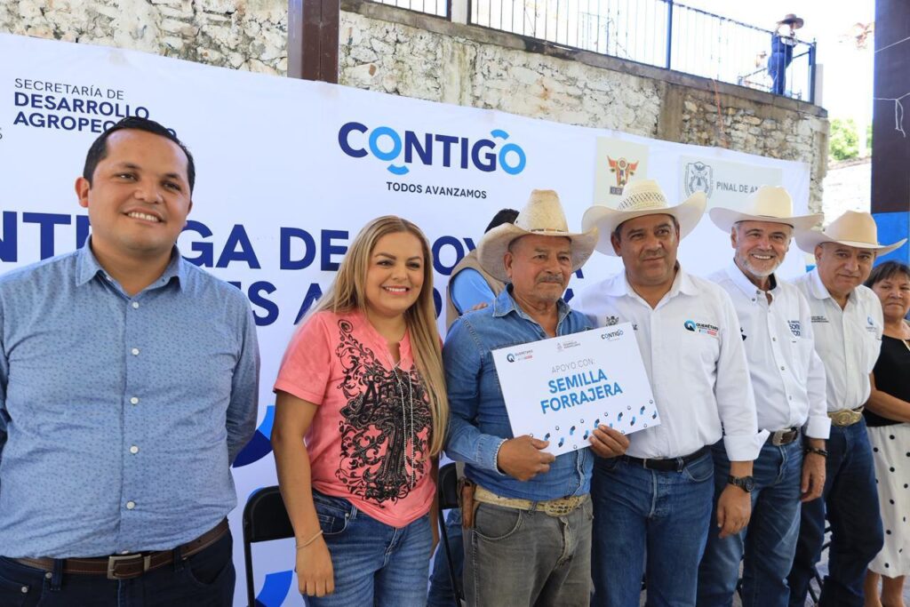La Presidenta Municipal de Pinal de Amoles, Lupita Ramírez Plaza, junto con el Secretario de Desarrollo Agropecuario del Estado, Ing. Rosendo Anaya Aguilar, encabezaron la entrega de apoyos a productores agropecuarios del municipio, beneficiando a todo el municipio pero destacando el apoyo a comunidades de difícil acceso como Piedra Parada de Santa Rosa, Santa Águeda, Mesas de Santa Inés, La Tinaja, Potrerillos, Las Joyas del Real, entre otras más.