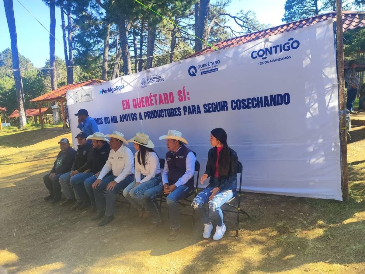 En el Parque Nacional Campo Alegre se llevó a cabo la entrega de apoyos económicos directos a productores de San Joaquín y Cadereyta de Montes, quienes resultaron afectados en sus parcelas de maíz, frijol y frutales.
