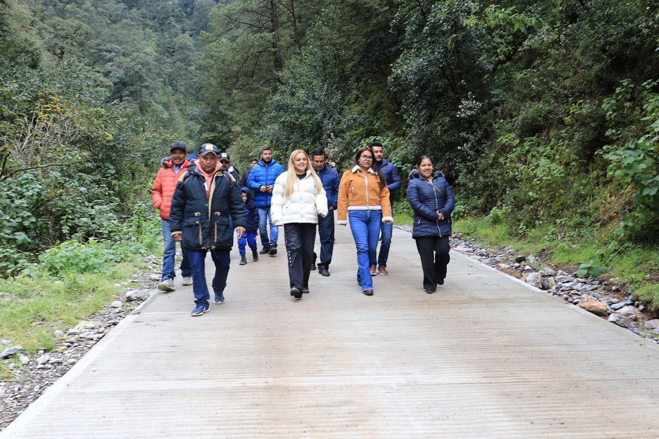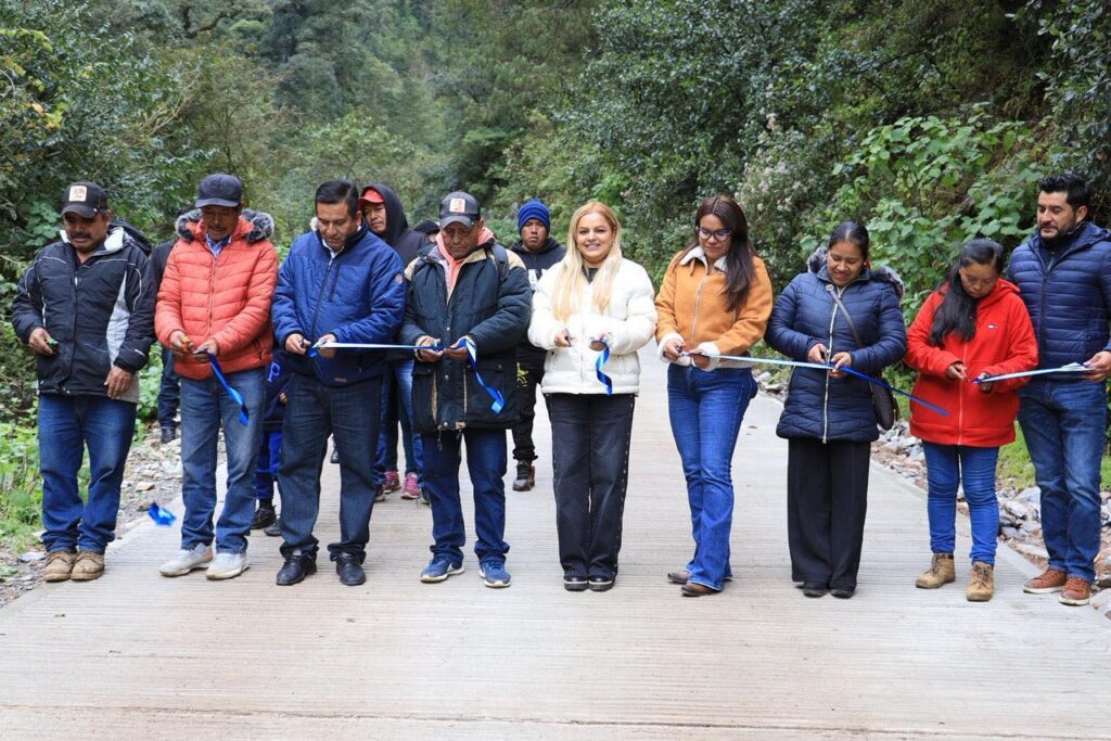 La presidenta municipal de Pinal de Amoles, Lupita Ramírez Plaza, en compañía de regidores del H. Ayuntamiento, entregó formalmente la construcción de una rampa de concreto hidráulico en el camino Puerto de los Velázquez–La Barranca.