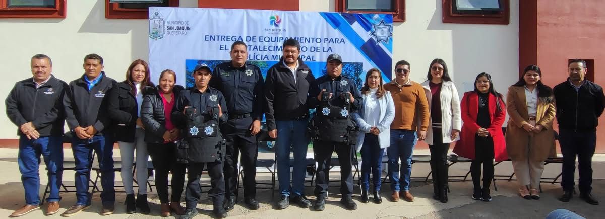 Con el objetivo de fortalecer la seguridad y mejorar la capacidad operativa de la corporación policial, se llevó a cabo la entrega de equipo táctico y unidades policiales en el municipio de San Joaquín. El acto fue encabezado por el Presidente Municipal, Mtro. Carlos Manuel Ledesma Robles, acompañado por el Secretario de Seguridad Pública, T.S.U. Tomás Reséndiz Ledesma, así como por Regidores y Servidores Públicos Municipales.