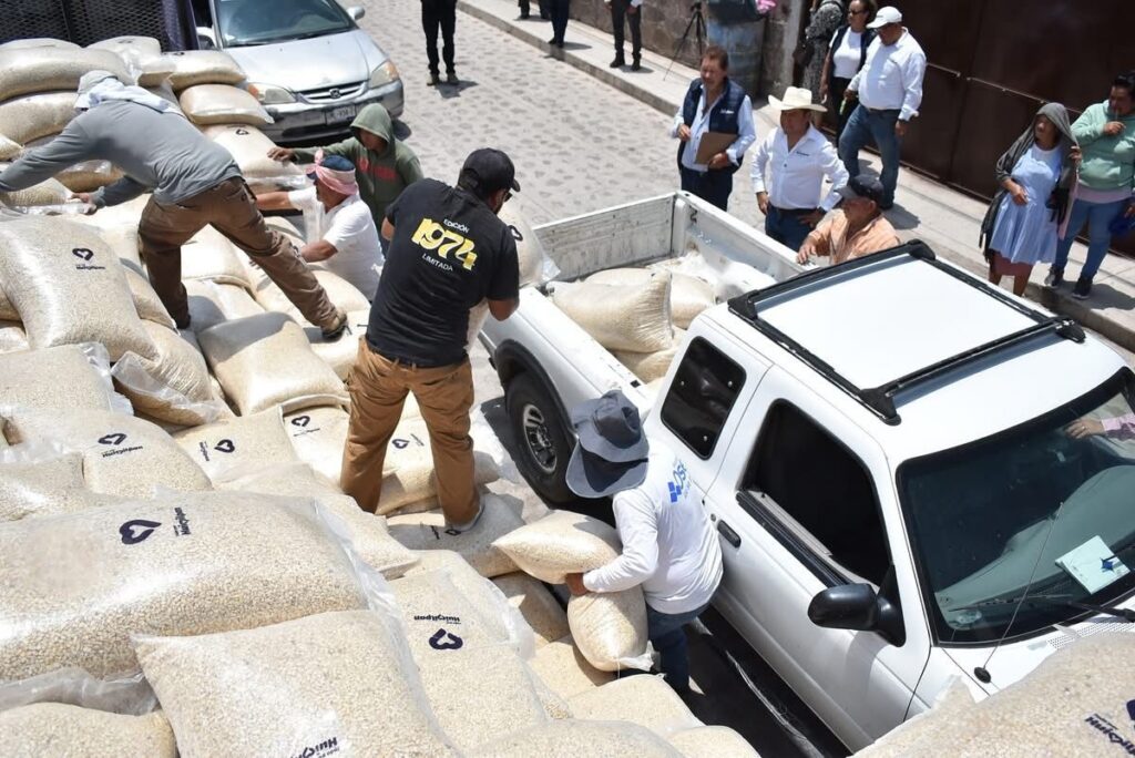 El Presidente de Huimilpan Jairo Morales estuvo en la comunidad de Lagunillas realizando la entrega de maíz, beneficiando a familias de: