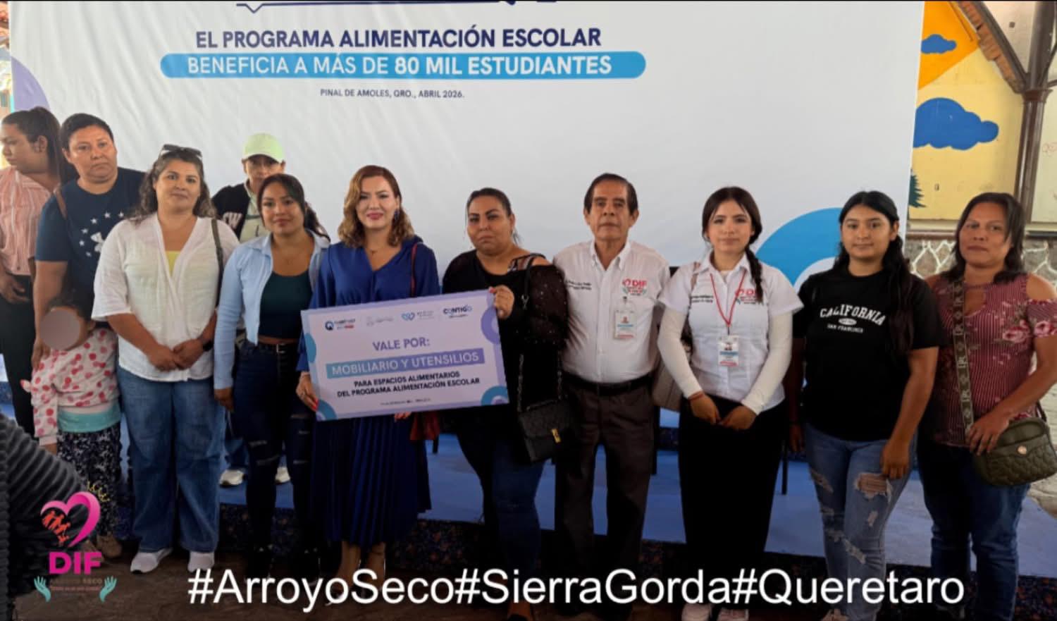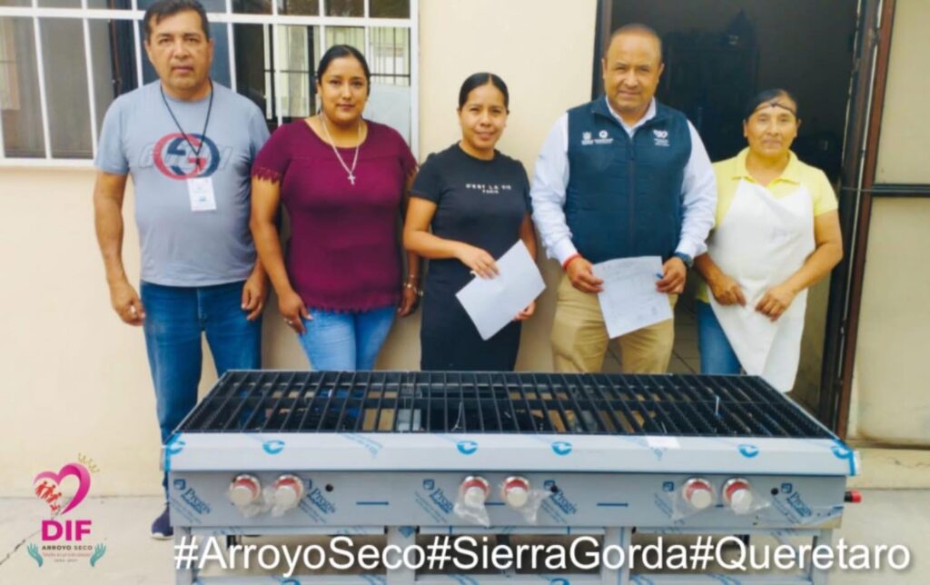 Contando con el respaldo del Presidente Municipal, Lic. Fernando Sánchez Gil, la Presidenta del SMDIF Arroyo Seco, Yulma García Gil, asistió, junto con la Directora, Lic. Reina Camacho, a la entrega de mobiliario y utensilios para espacios alimentarios del Programa de Alimentación Escolar, realizada por el DIF Estatal Querétaro, bajo el lema “Uniendo corazones”, a través del Sistema Estatal para el Desarrollo Integral de la Familia.