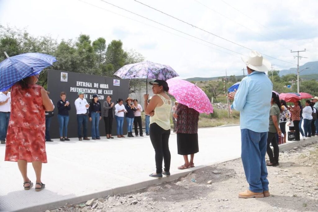 La Presidenta Municipal Ana Karen Jiménez, acompañada de regidores, directores de la administración y beneficiarios, encabezó la entrega de la 1ª etapa de pavimentación de la calle en San Lorenzo, una obra que marca un paso importante en el mejoramiento de la infraestructura vial de la comunidad.