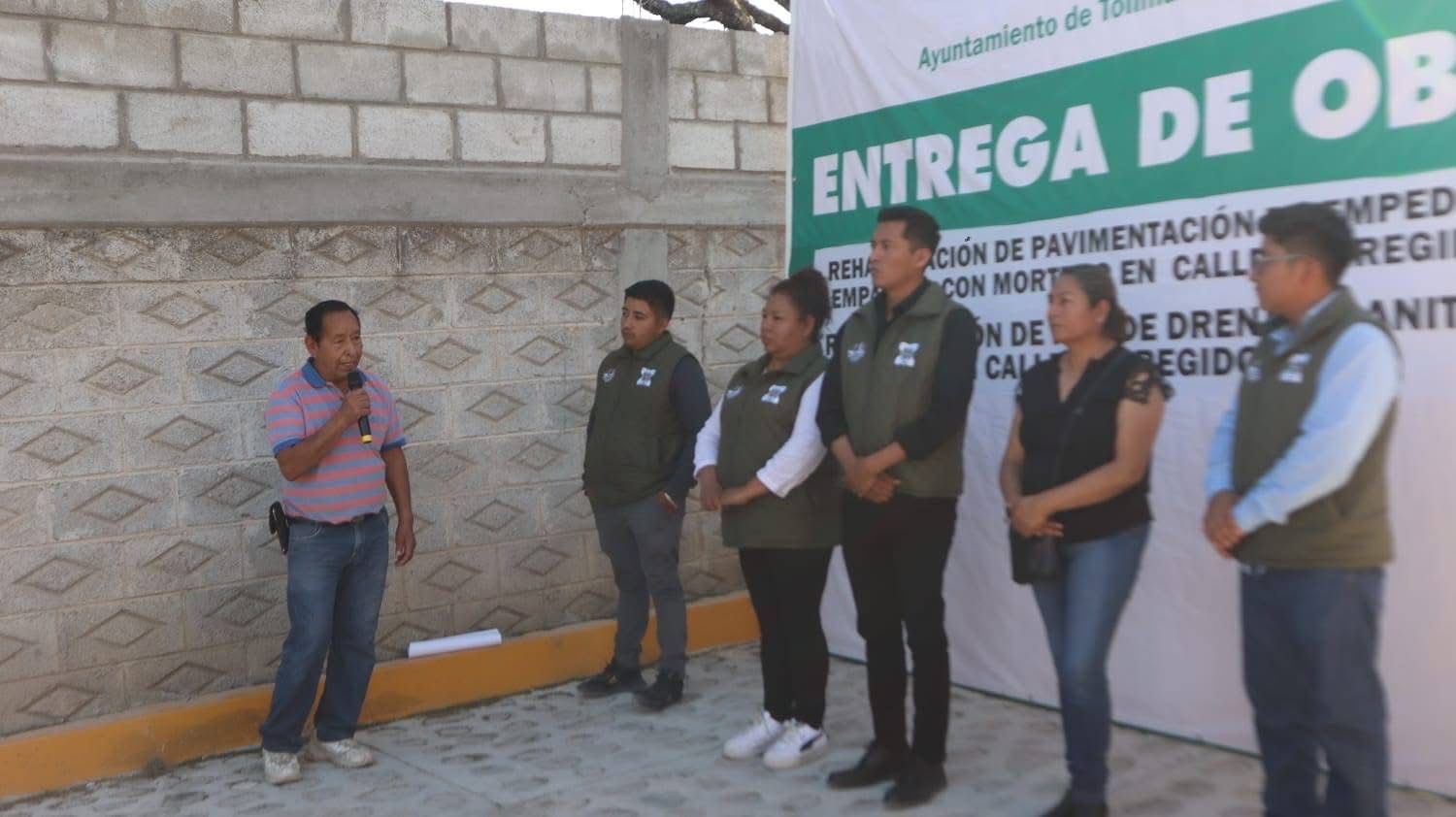 El Presidente Municipal de Tolimán, C. Alejo Sánchez de Santiago, encabezó la entrega de la rehabilitación de la red de drenaje sanitario y la pavimentación con empedrado empacado con mortero en la calle Corregidora, en la Delegación de San Pablo.