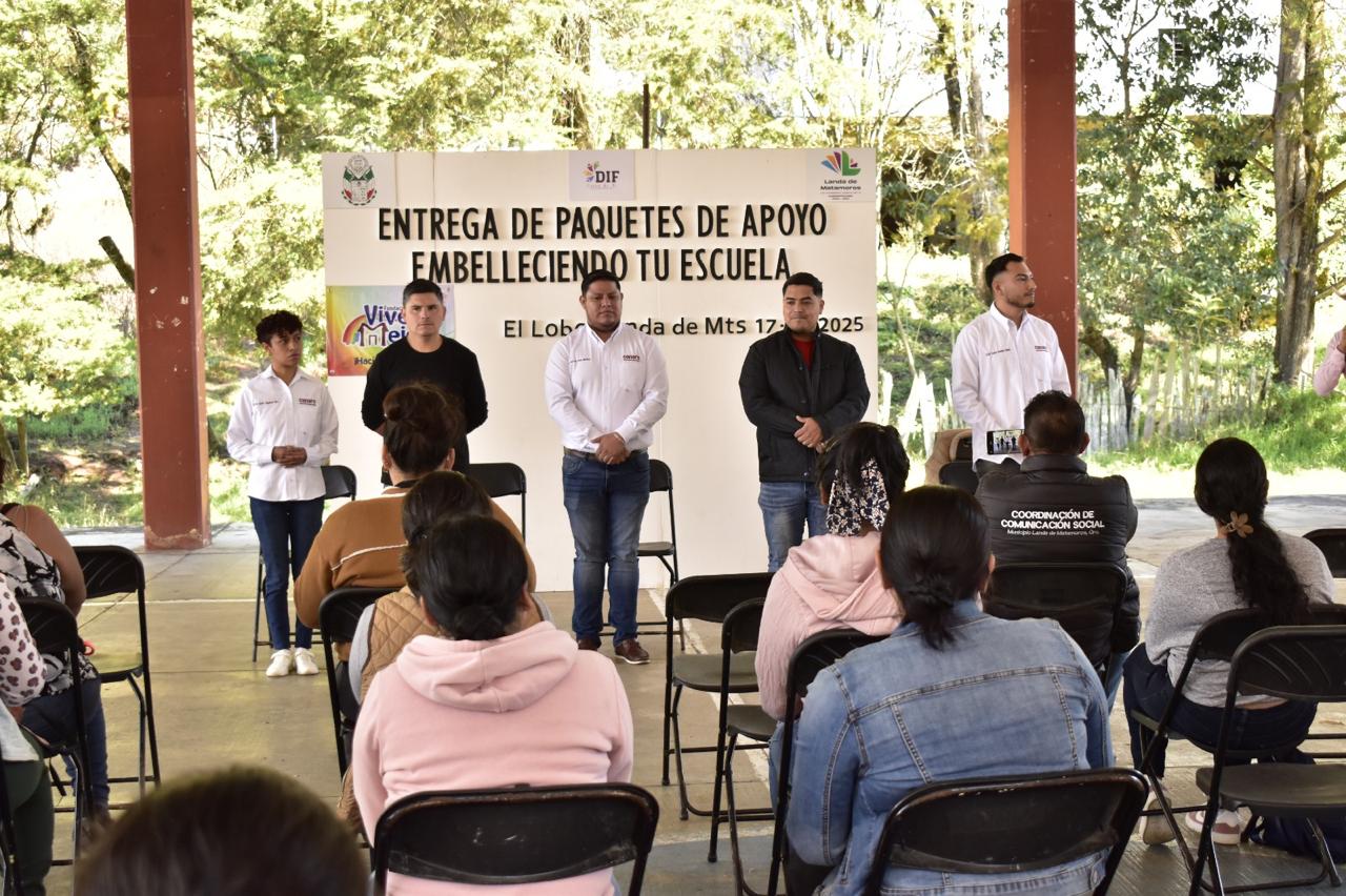 En la cancha techada de la delegación de El Lobo, el presidente del Sistema Municipal DIF Heriberto Martínez Chávez, realizó la entrega de 11 apoyos al mismo número de escuelas de CONAFE, los cuales fueron gestionados ante la fundación Vive Mejor.