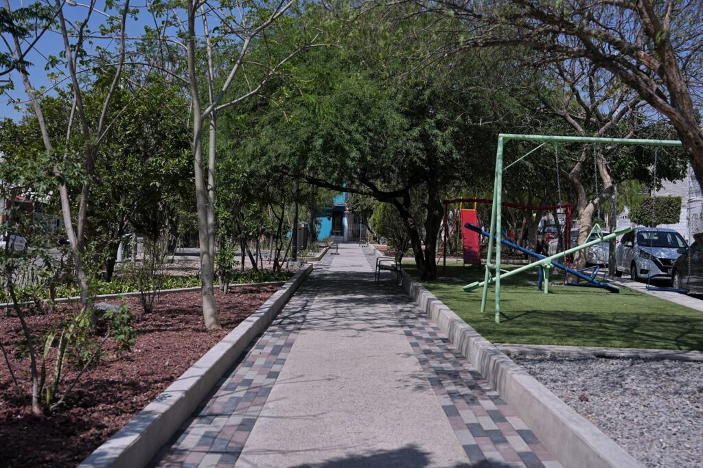 Además, como parte de la rehabilitación integral de los parques Pápagos, Nahuas y Picos, se llevaron a cabo trabajos como la rehabilitación de cuatro juegos infantiles, la instalación de cuatro bancas, la renovación de andadores con concreto estampado, la mejora de la plaza central y la construcción de cuatro rampas de acceso.