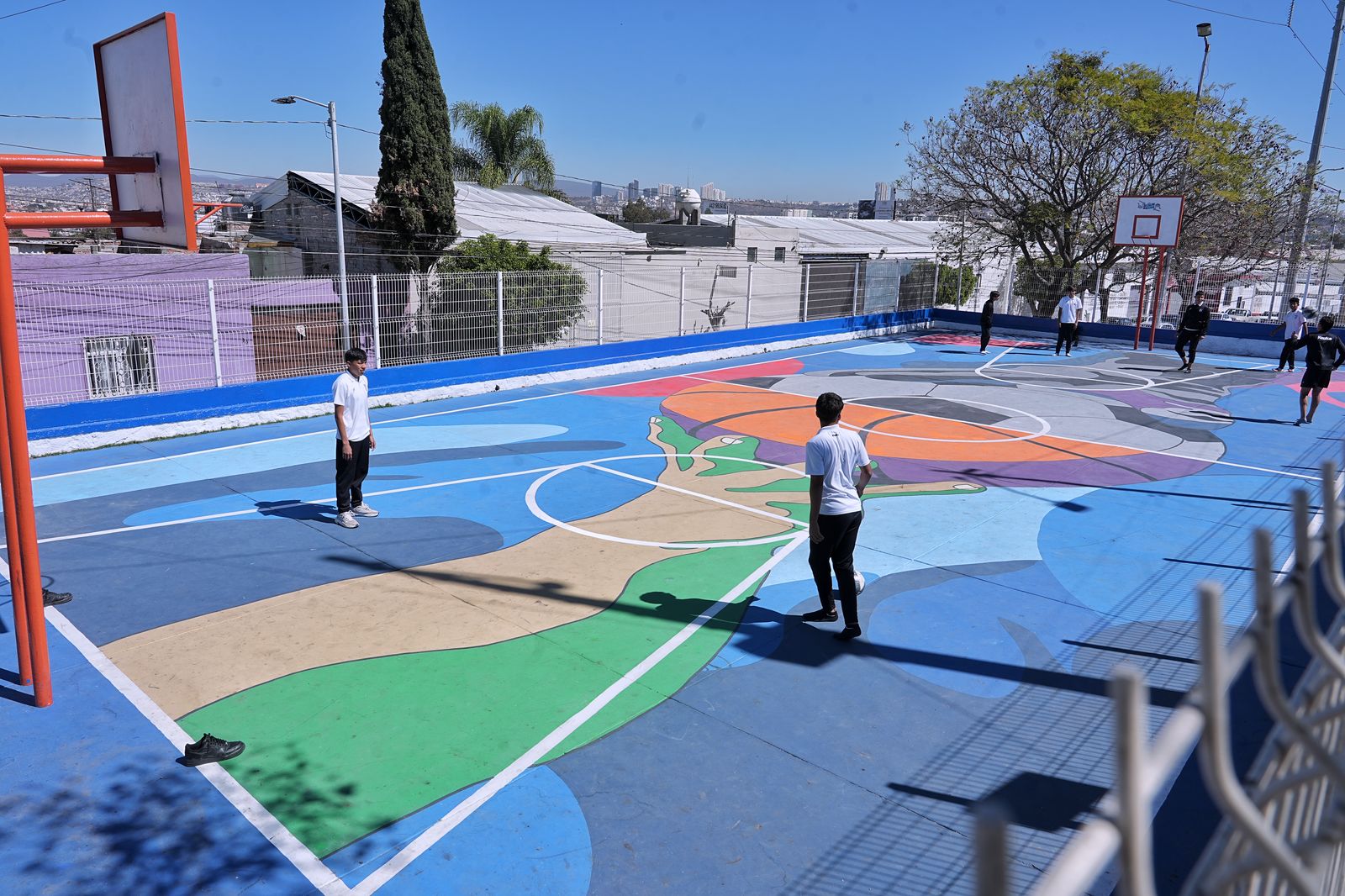 - Además se rehabilitaron las cinco canchas que se ubican sobre la Avenida 4, cuatro canchas de usos múltiples y una de frontón, las cuales fueron pintadas, se rehabilitaron los tableros y porterías y en unos casos se completó la malla-reja acero en el perímetro de las canchas.