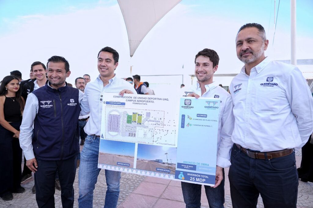 - Durante el evento, Felifer Macías también anunció la construcción de la primera etapa de la Unidad Deportiva UAQ, campus Aeropuerto, con una inversión de 25 millones de y se tiene contemplado construir dos canchas de flag fútbol y una cancha de fútbol 7.