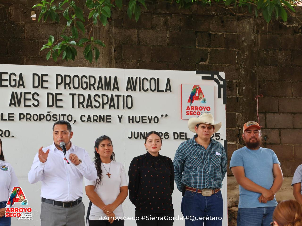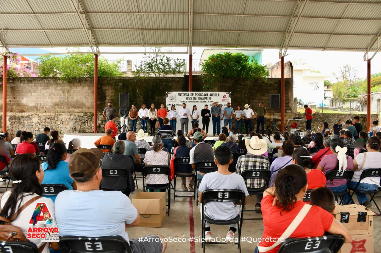 Los 300 beneficiarios pertenecen a las distintas comunidades que conforman el municipio de Arroyo Seco, y cada paquete de aves de doble propósito consta de 7 hembras y 3 machos de la raza Rhode Island Red, de cuatro semanas de edad, a las cuales se les aplicaron las vacunas Marek y Newcastle.