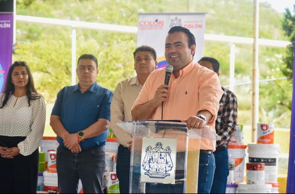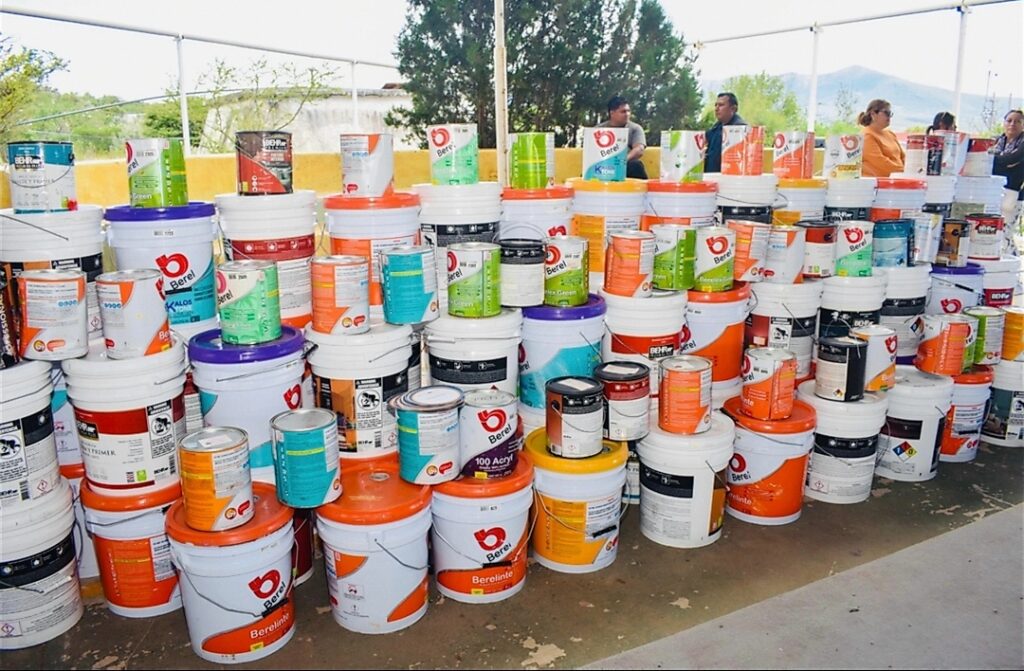 El Presidente Municipal, Gaspar Trueba Moncada, y la Fundación «Vive Mejor» entregaron 3,500 litros de pintura a 34 escuelas de 26 comunidades de Colón, con el objetivo de embellecer las instalaciones y mejorar el entorno de los planteles donde estudian más de 4,300 alumnos.