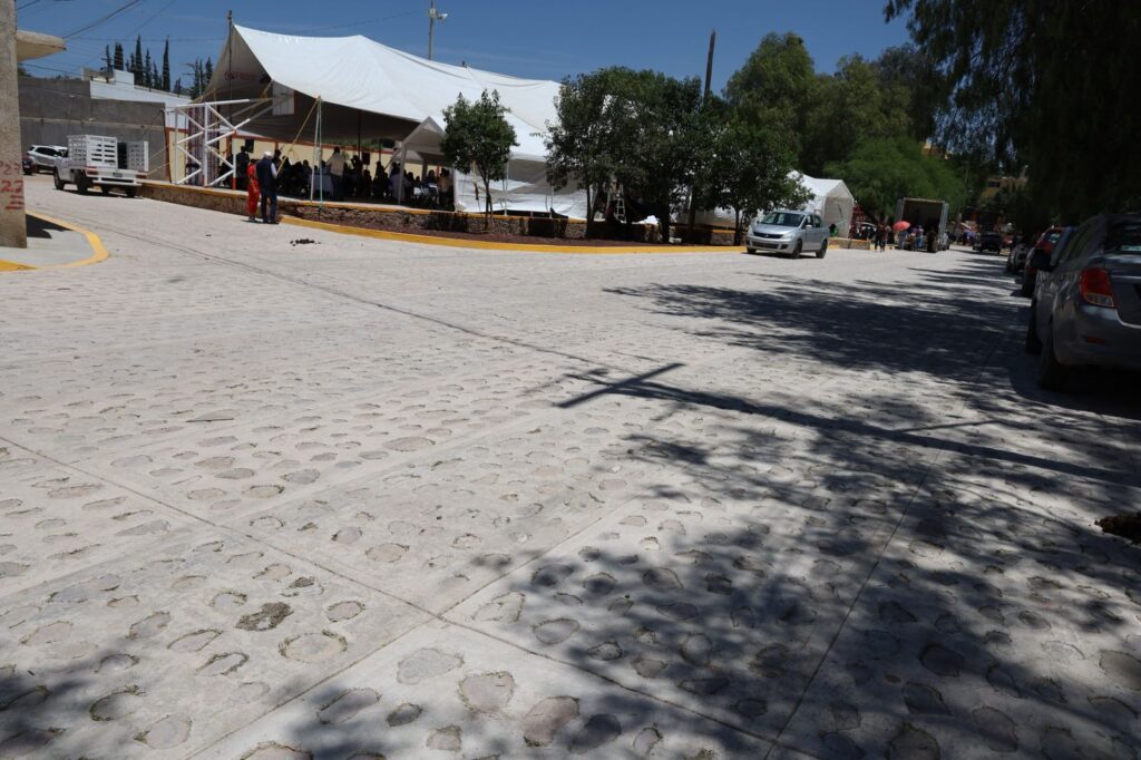 Las obras de urbanización de las dos vialidades consistieron en la construcción de 1701.56 m2 de empedrado ahogado en mortero; 2296.00 m2 de banquetas de concreto hidráulico y 644.72 m2 de bacheo de pavimento de carpeta asfáltica; así como la renivelación de registros sanitarios.