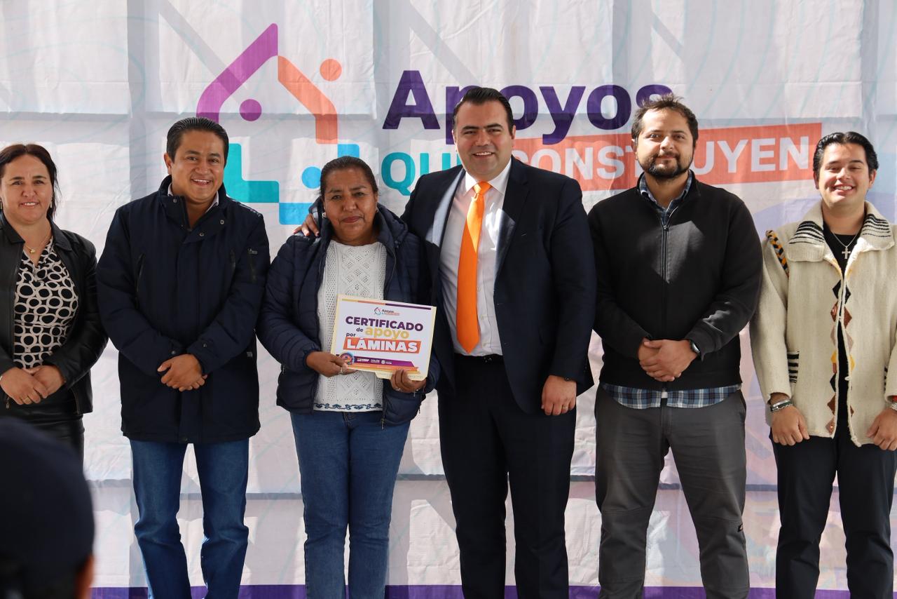 Entre los apoyos entregados, destacan tinacos, alentadores solares, paquetes de calentador, de tinaco y de herramientas, juegos de baños, colchones, láminas, cemento, mortero, recámaras, entre otros productos para el hogar.