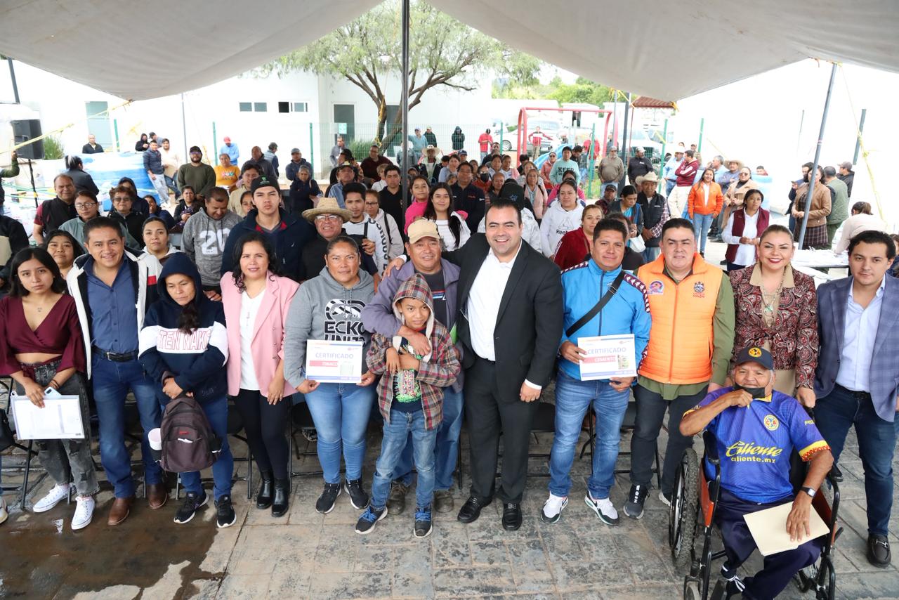 Durante el evento, el Alcalde fue acompañado por el Regidor Síndico, Antonio Rodríguez Dávila; la Secretaria Privada, Cecilia Oceguera Feregrino; el Secretario de Desarrollo Social, Carlos Camacho Cedillo; el Secretario Técnico, Enrique Hernández Dorantes; así como la beneficiaria de la comunidad de Santa Rosa de Lima, Verónica López Nieves.