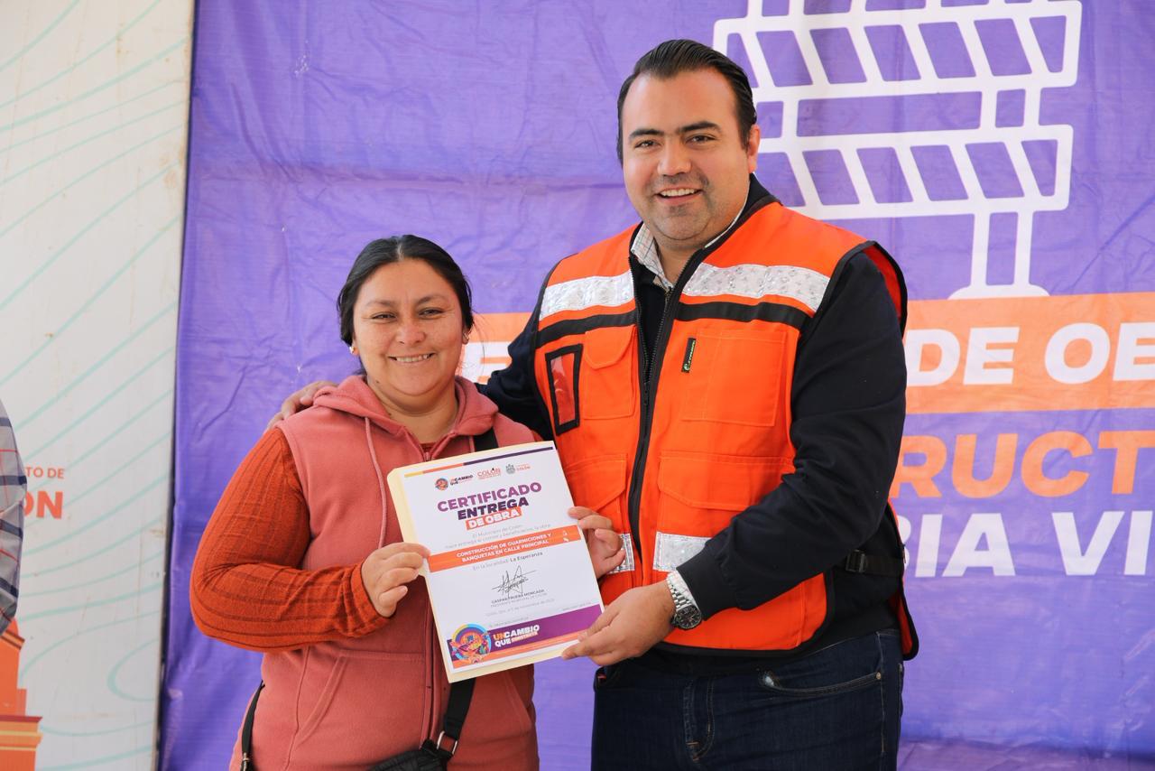 La comunidad de La Esperanza se vistió de fiesta el día de hoy con la entrega de la obra de construcción de guarniciones y banquetas en la calle principal.