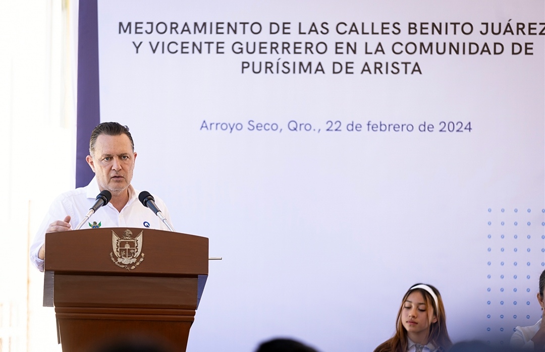 En su mensaje, el secretario de Desarrollo Urbano y Obras Públicas, Fernando González Salinas, precisó que, en seguimiento a la encomienda del Gobernador, en Arroyo Seco también se construye el futuro de Querétaro; Purísima de Arista, dijo, es la localidad más poblada del municipio; donde se intervinieron las calles Vicente Guerrero y Benito Juárez para su total transformación.